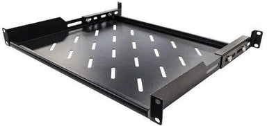 Expanding Mounting Rails allows shelf to be installed onto rails 710-815mm apart Max Load: 60kgs Colour: Black