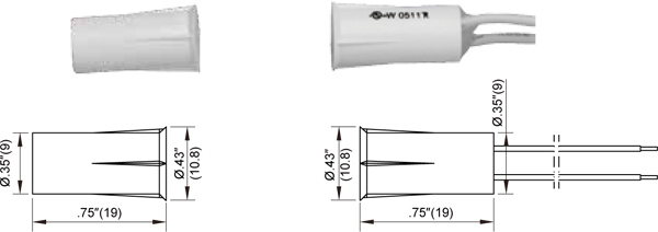 Contact Size: 1β³Γ.84β³(25mmΓ21.3mm) Standard Magnet Size: 1β³Γ.84β³(25mmΓ21.3mm) Standard Gap: 1.1β³(28mm) Colors: White, Brown 12β³(305mm) 22 AWG Leads...
