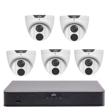 Uniview 8CH Easy Series 6MP Turret Kit - 1 x NVR301-08X-P8-4TB, 5 x IPC3616LE-ADF28KM, 2.8mm, 120WDR, 30m IR, Built-in Mic, POE or 12VDC, IP67 (Wal...