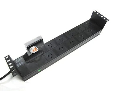 CERTECH 6 Outlet 1RU Horizontal Power Rail (10A) with 6kVa C-Curve MCB Circuit Breaker, on/off switch & 50mm Recessed Brackets. Cord fitted wi...