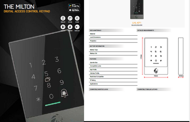 Lionhead Lock Oscar Access Control Keypad With BLE, PIN Entry, MiFare Reader Material: Zinc alloy Colour:ย Silver Panel Sizes:ย 149mm X 68mm X 25...