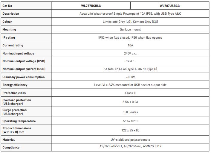 Legrand* Aqua Life Weatherproof Single 10A Powerpoint With USB Type A & C, IP53 **LIMESTONE GREY**