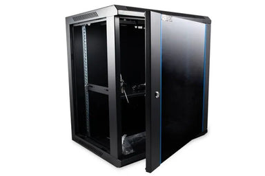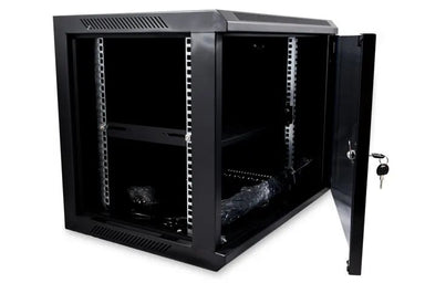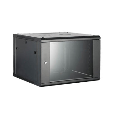 Hikvision 6RU 450mm Deep Wall Mount Cabinet With 1 x 300mm Deep Shelf, Lockable Glass Front Door, Rapid Build Flatpack, 600W x 450D x 366H mm