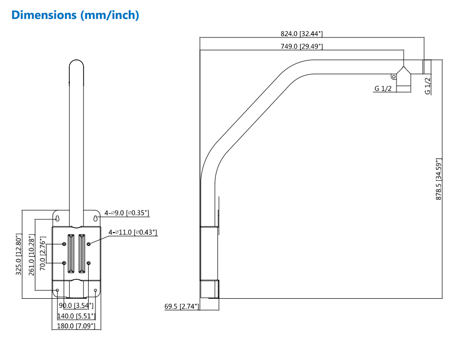 Dahua* (PFB303S) PTZ Parapet Gooseneck Bracket Mount