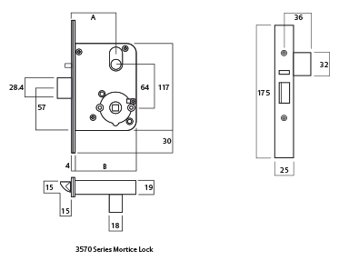 Refer to catalogue for STD Backset and Extended Backset dimensions.