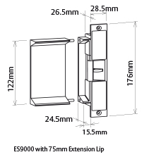 **SPECIAL ORDER** Padde Electric Strike Multi-Voltage, Multi-Function With Pre-Load Monitored & Extension Lip Holes **MTO** (Alternative With Lip Extension Holes Is ES9100)